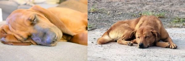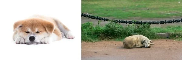 Two dogs sleeping outside